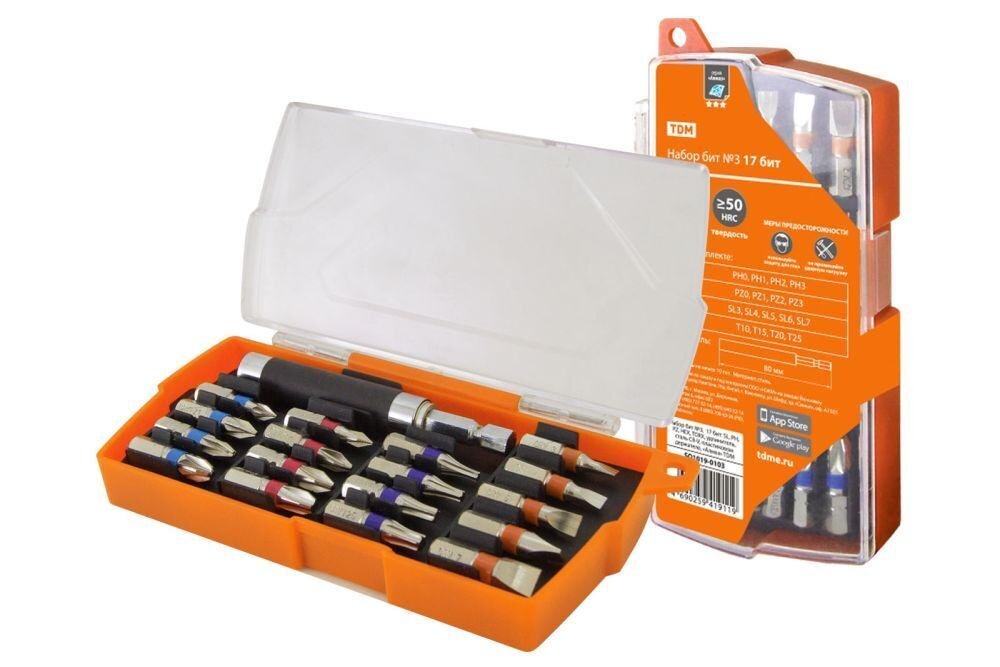 Набор бит TDM ЕLECTRIC Набор бит №3, 17 бит: SL, PH, PZ, HEX, TORX, удлинитель, сталь CR-V «Алмаз» (SQ1019-0103)