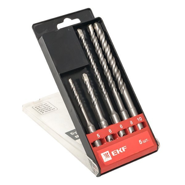 Набор буров по бетону EKF Набор буров по бетону SDS-plus (5/110, 6/110, 6/160, 8/160, 10/160)(2 резца) Master (db-h5-2х4)