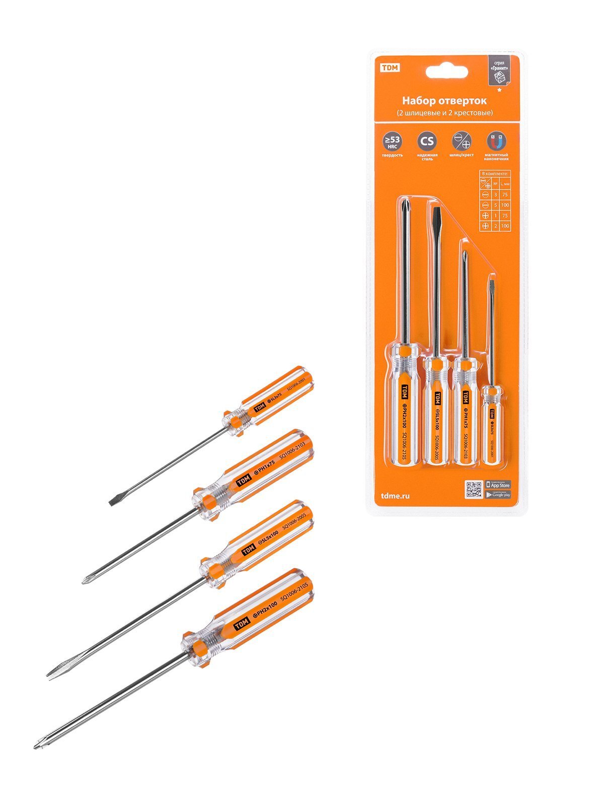 Набор отверток TDM ЕLECTRIC Набор отверток 4шт.: SL3x75, SL5х100, PH1х75, PH2х100, блистер, CS "Гранит" TDM (SQ1013-0101)