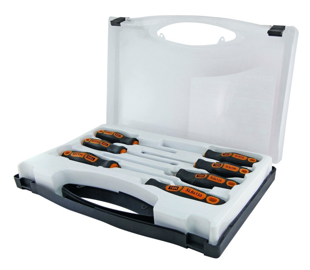 Набор отверток TDM ЕLECTRIC Набор отверток 7 шт.: SL3х75;5х100;6х125;8х150, PH:0х75;PH1х100;PH2х125, чемодан, CR-V "Алмаз" TDM (SQ1013-0206)
