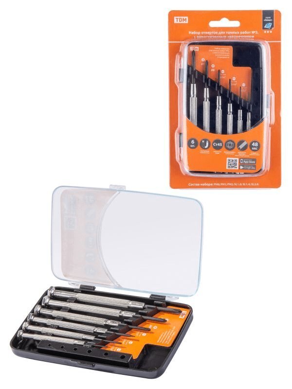 Набор отверток TDM ЕLECTRIC Набор отверток для точных работ №3, с намагниченным наконечником (6 предметов) "Алмаз" TDM (SQ1013-0303)