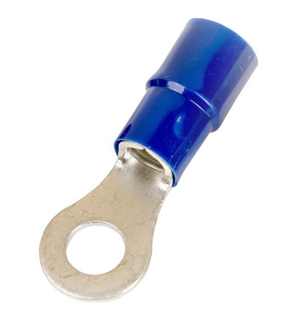 Наконечник с отверстием под винт (кольцевой) и изолированным фланцем ПА под провода для проводников сечением 1,5-2,5 мм?, метрический размер болта М6 (D6,4мм), медь, цвет синий
