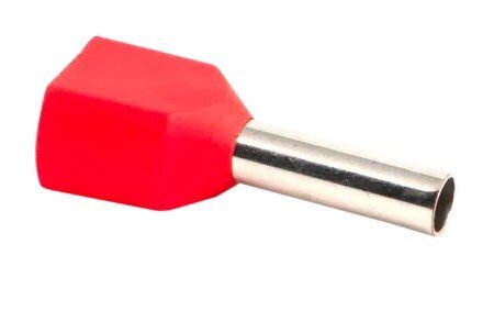 Наконечник штыревой втулочный изолированный двойной для оконцевания гибких многопроволочных медных проводников сечением 1,0 мм?, длина контактной части 8 мм, луженая медь, цвет изоляции красный (50 шт.)