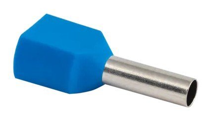 Наконечник штыревой втулочный изолированный двойной для оконцевания гибких многопроволочных медных проводников сечением 2,5 мм?, длина контактной части 10 мм, луженая медь, цвет изоляции синий (50 шт.)