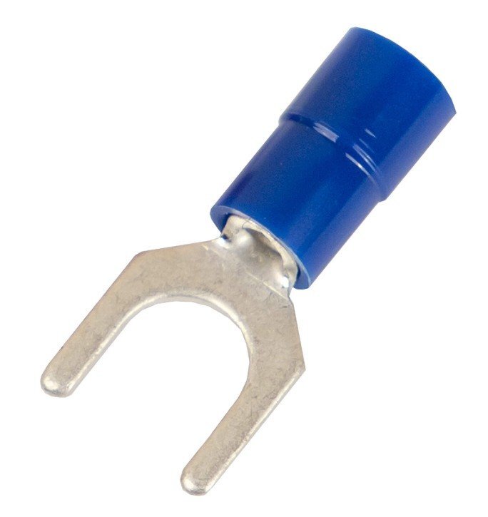 Наконечник вилочный с изолированным фланцем ПА под провода для проводников сечением 1,5-2,5 мм?, метрический размер болта М8 (D8,4мм), медь, цвет синий