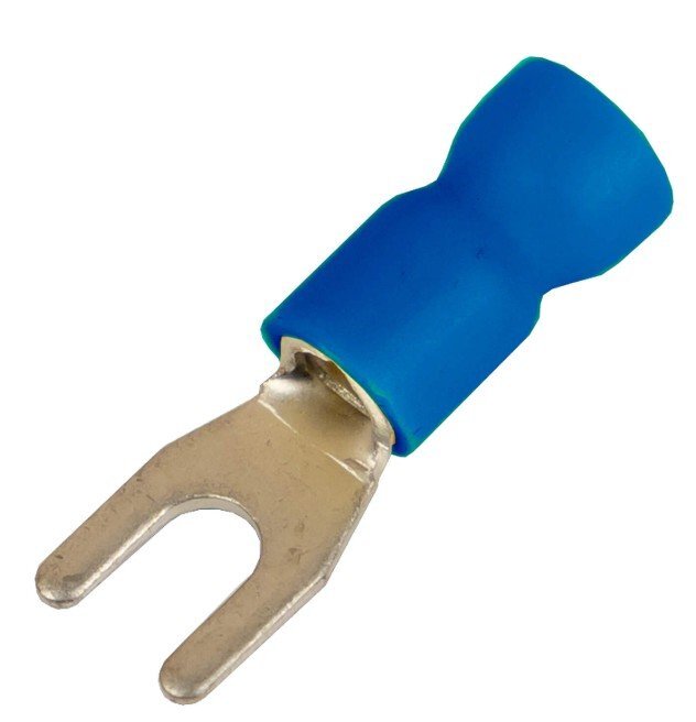 Наконечник вилочный с изолированным фланцем ПВХ под провода для проводников сечением 1,5-2,5 мм?, метрический размер болта М3 (D3,2мм), медь, цвет синий