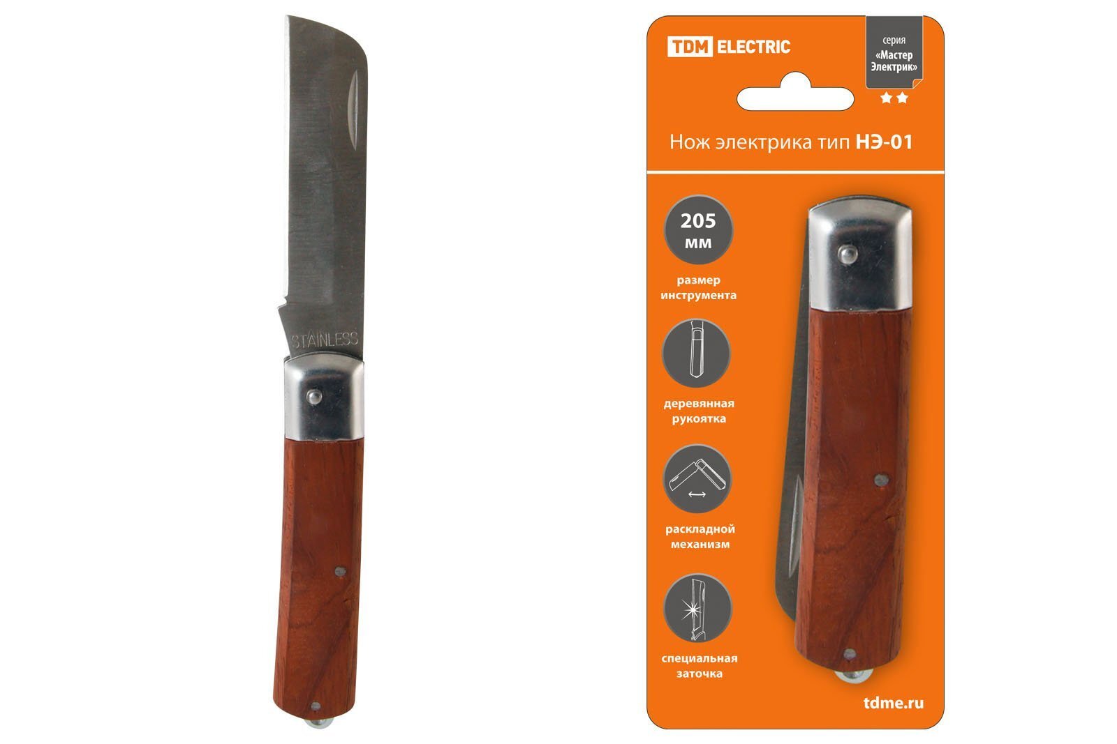 Нож электрика TDM ЕLECTRIC НЭ-01 205мм, деревянная рукоятка "МастерЭлектрик" TDM (SQ1003-0105)