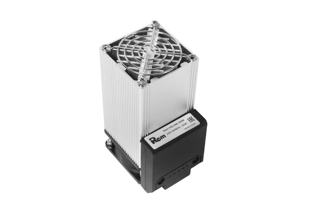 Полупроводниковый нагреватель HGL046-150W для длительного (50 000 часов при температуре 25 °C) поддержания температуры в телекоммуникационном шкафу оборудован вентилятором.