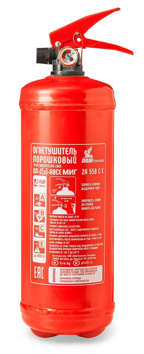 Класс пожара 2А,55В,С,Е | Перезарядка раз в 5 лет |