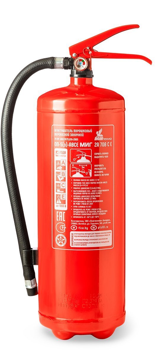 Порошковые огнетушители МИГ заряжены высококачественным огнетушащим порошком «Вексон АВС-25».