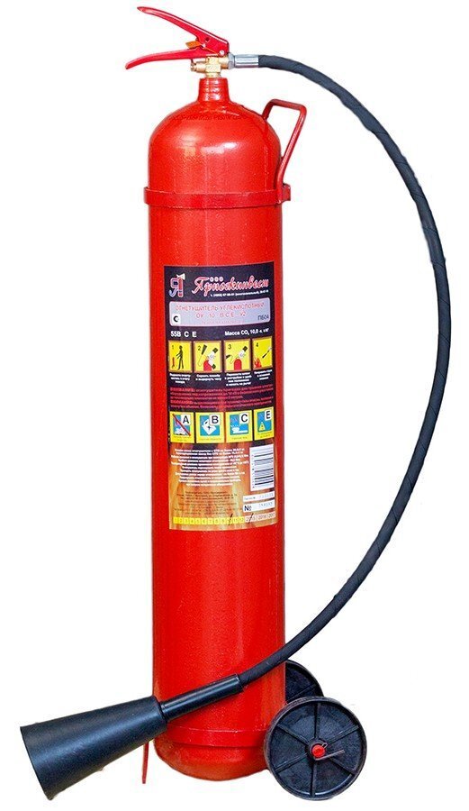 Углекислотные огнетушители предназначены для тушения различных веществ, горение которых не может происходить без доступа кислорода, загораний на электрифицированном железнодорожном и городском транспорте, электроустановок, находящихся под напряжением до 10 000 В, загораний в музеях, картинных галереях и архивах, широкое распространение в офисных помещениях при наличии оргтехники, а так же в жилом секторе. Основным преимуществом углекислотных огнетушителей является то, что двуокись углерода не повреждает объект тушения и не оставляет следов.