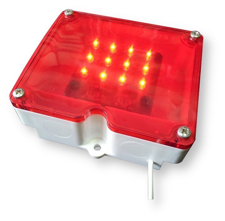 Оповещатель световой; U-пит.9…13.8 В, I-потр.30 мА; IP66, t-раб.-55…+70°C, 157х121х50 мм. Кабель подключения КСПВГ 2х0.2 мм длиной 1 м.