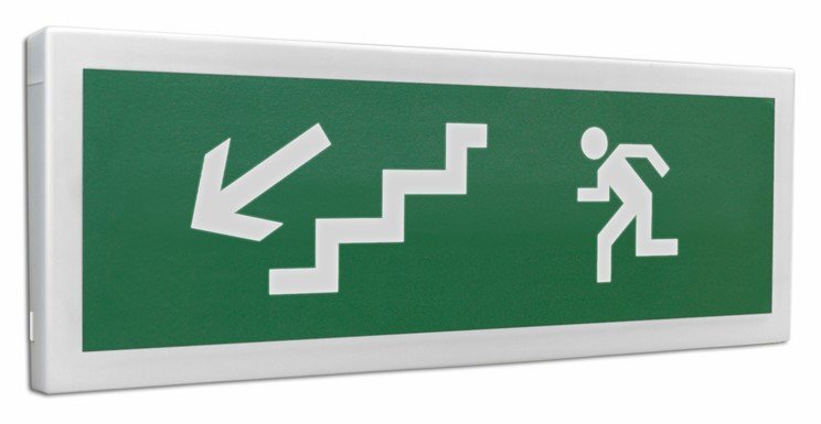Оповещатель световой адресный "Человек влево вниз". Питание от С2000-КДЛ и от внешнего источника питания 12...24 В, IP41, t-раб.-30...+55°С, 303?112?33 мм
