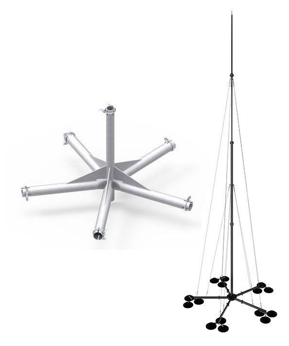 Основание для молниеприемных мачт представляет из себя пятиногу для установки 8-10-метровых молниеприемных мачт на бетонных основаниях. Материал - горячеоцинкованная сталь.