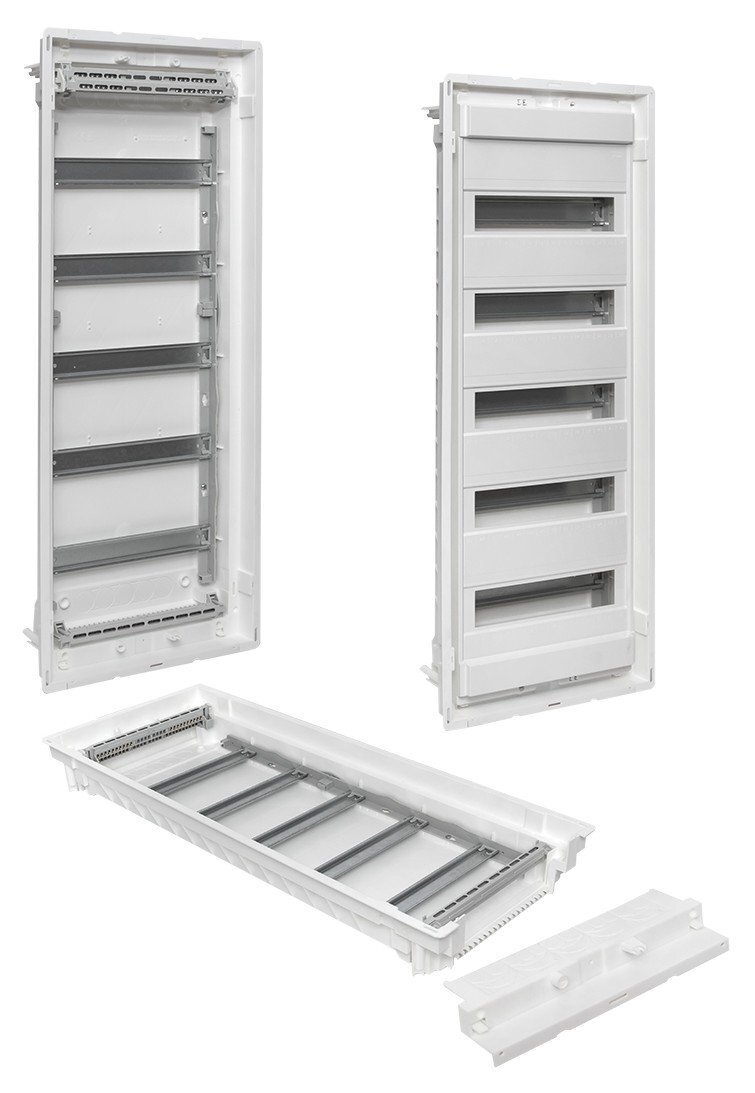 Корпуса пластиковые серии «Nova» предназначены для сборки силовых, слаботочных и комбинированных щитов. На DIN-рейки устанавливается модульное оборудование. На монтажные платы – антенные разветвители, Wi-Fi роутеры, патч-панели и иное слаботочное оборудование. Щиты устанавливаются как в бетонные и кирпичные стены, так и в гипсокартон, монтажные комплекты для установки в гипсокартон входят в комплектацию оснований щитов либо в комплектацию щитов в сборе. Двери щитов можно выбрать их разных материалов – пластик, металл или металл с перфорацией. Также доступны дополнительные аксессуары, необходимые для установки мультимедийного оборудования и существенно упрощающих монтаж щитов. Есть возможность приобрести как отдельно основание щита и дверь, так и основание с дверью в комплекте в одной коробке. Основные преимущества: съемные шасси с din-рейками, съемные кабельные фланцы, гребенка для фиксации входящих проводников, регулировка дверей по глубине, современный минималистичный дизайн