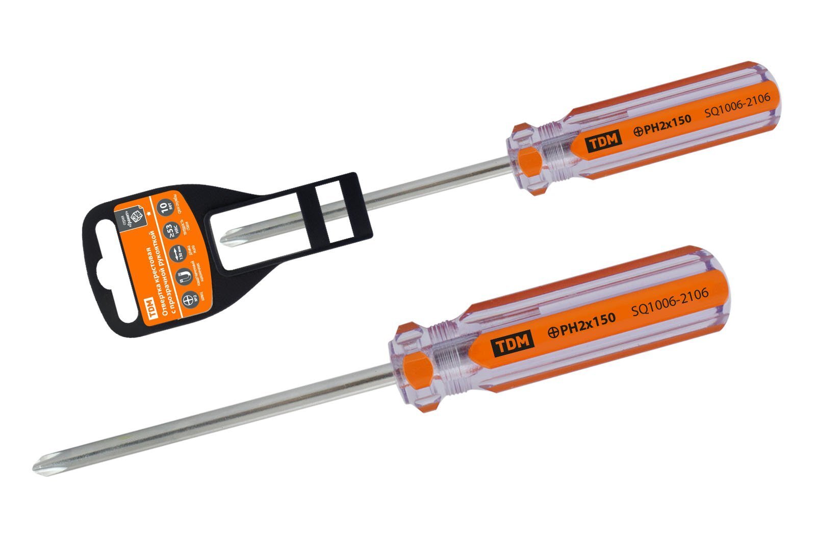 Отвертка крестовая TDM ЕLECTRIC Отвертка крестовая, прозрачная рукоятка, углеродистая сталь, тип PH2x150мм "Гранит" TDM (SQ1006-2106)