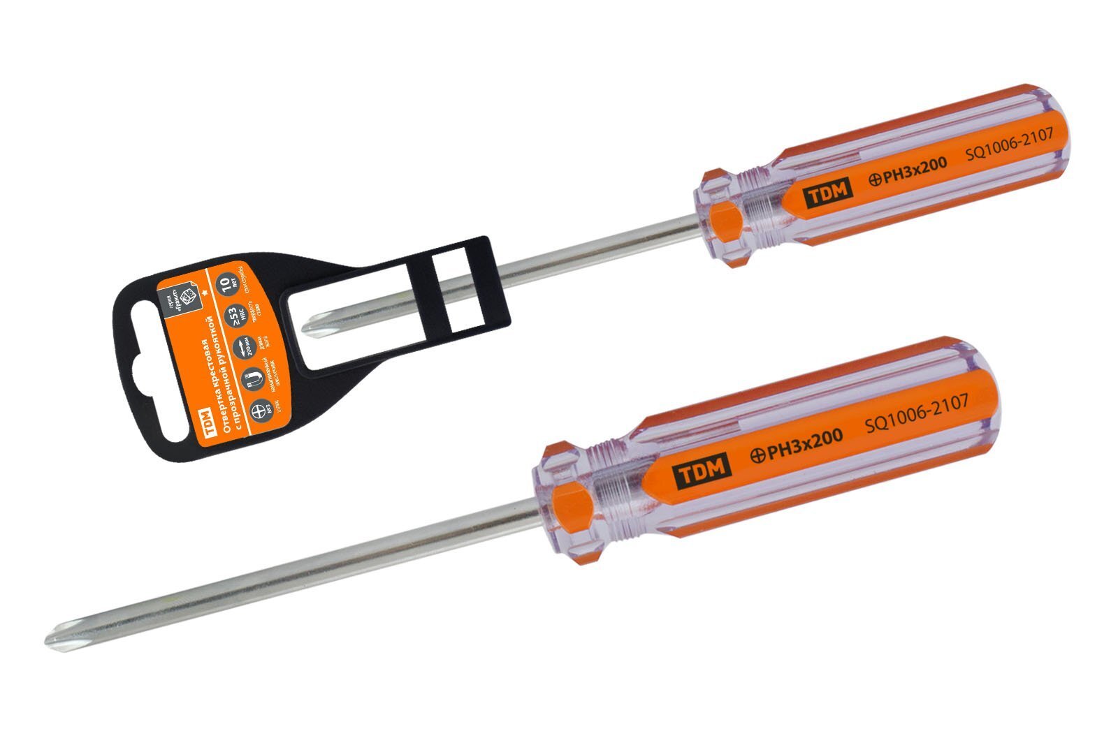 Отвертка крестовая TDM ЕLECTRIC Отвертка крестовая, прозрачная рукоятка, углеродистая сталь, тип PH3x200мм "Гранит" TDM (SQ1006-2107)