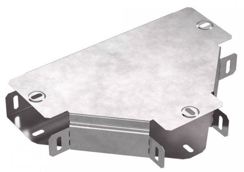 Аксессуары изготовленные из стали с защитным покрытием по методу Сендзимира – это изделия, на которых защитное цинковое покрытие было нанесено на листовую сталь перед изготовлением. Толщина защитного покрытия варьируется от 10 до 22мкм. Климатическое исполнение изделий УХЛ2, что предусматривают эксплуатацию в помещении и под навесом, при температуре эксплуатации от -80 до +150°С. Т-образный ответвитель предназначен для разветвления кабельных трасс в горизонтальном направлении,для перфорированных и глухих лотков. В комплект входит крышка.