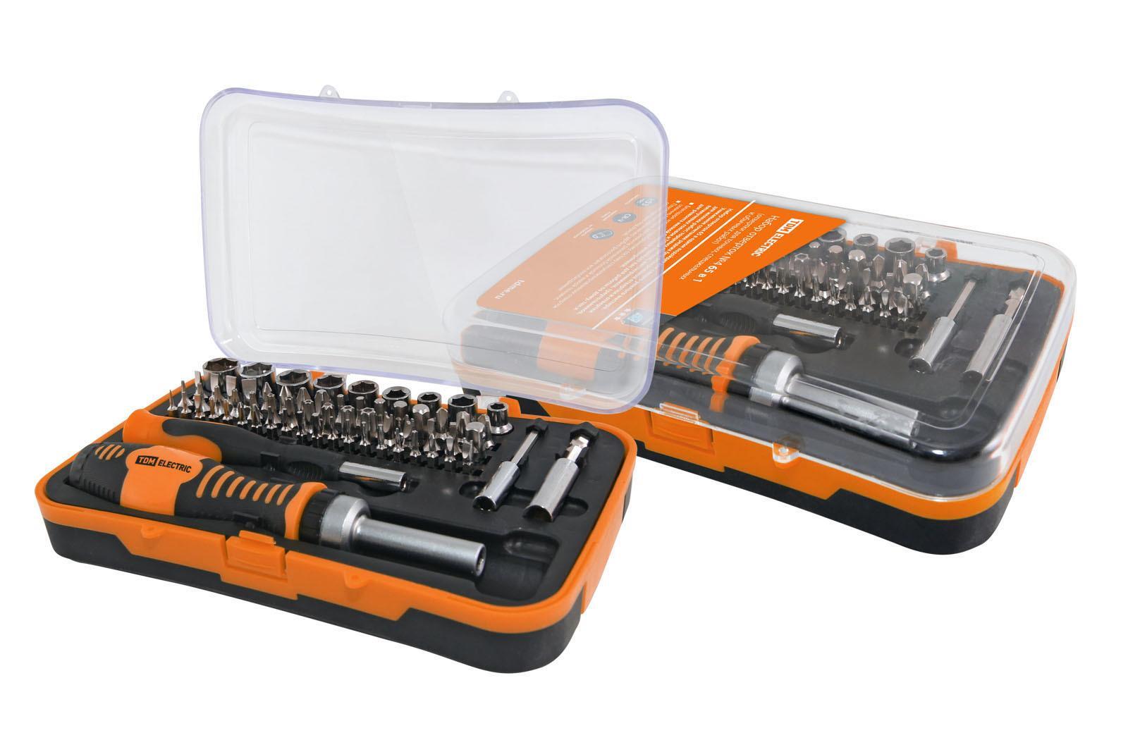 Отвёртка TDM ЕLECTRIC Набор, две отвертки: реверсивная, тонкая, в комплекте биты и головки, №4, 65 предметов "Алмаз" TDM (SQ1019-0204)