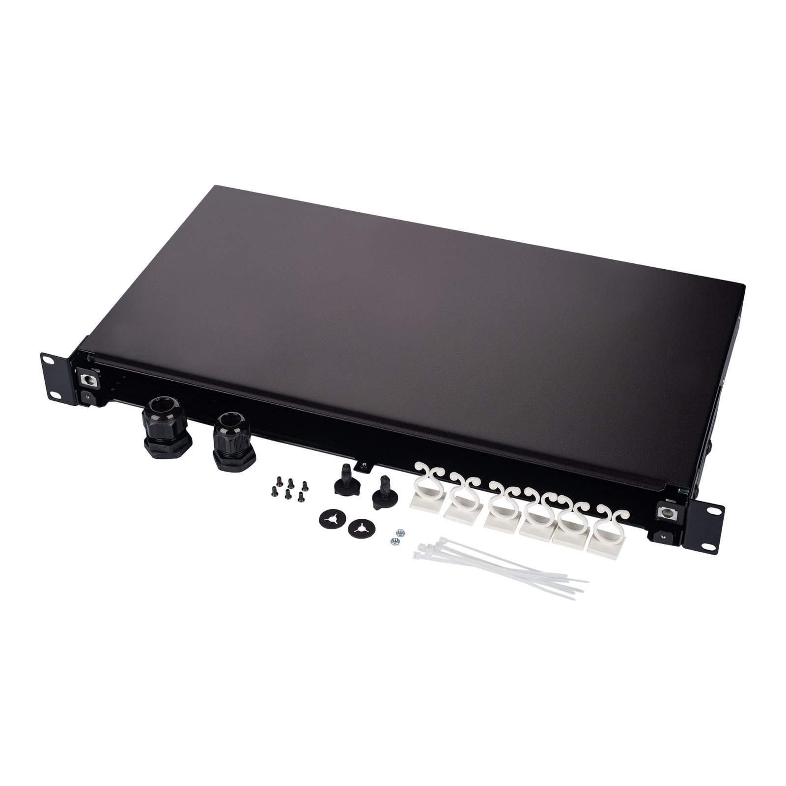 Панель оптическая, без планок и адаптеров Datarex Панель оптическая коммутационная, 19", 1U выдвижная, черный (DR-471841)