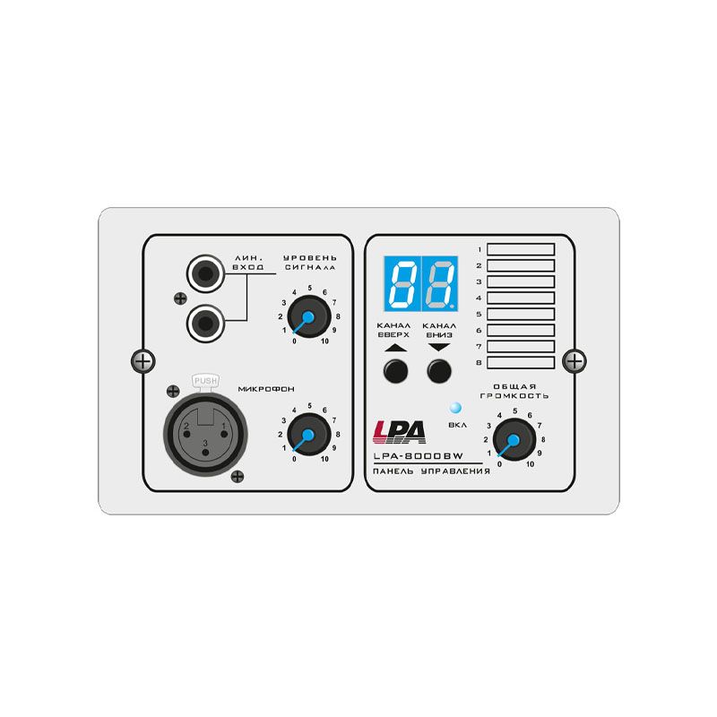 Панель управления звуком используется вместе c аудио-матрицей LPA-MATRIX-8000 Регулировка громкости Выбор нужного канала трансляции Индикатор питания 2 локальных аудио входа лин.вход/микрофон