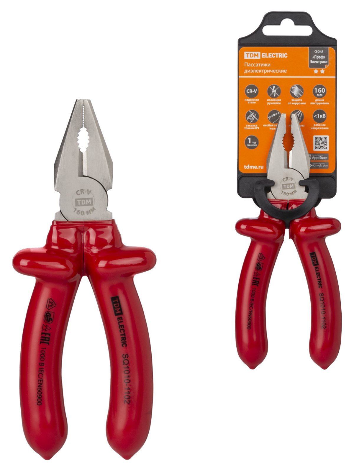 Пассатижи диэлектрические TDM ЕLECTRIC Пассатижи диэлектрические 160мм, 1000В, CR-V «ПрофиЭлектрик» TDM (SQ1010-1102)