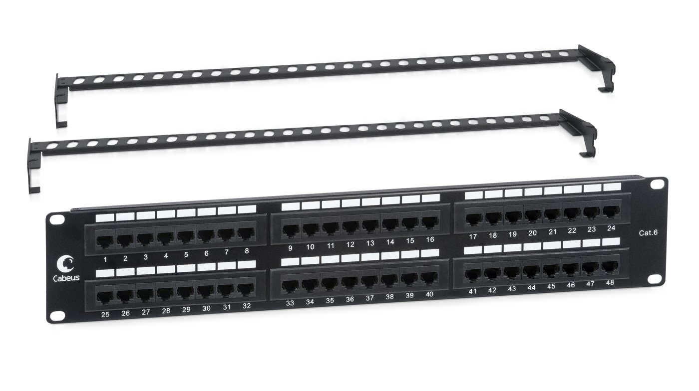 Неэкранированная патч-панель выполнена в 19” формате и предназначена для установки в телекоммуникационные шкафы и стойки. Соответствует характеристикам категории 6. Имеет 48 портов RJ-45 на 2U.