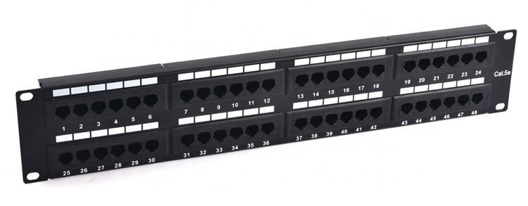 Патч-панель RJ 45 предназначена для монтажа кабелей в структурированной кабельной системе и подключения отдельных сетей или устройств друг к другу с использованием коммутационных шнуров, их еще часто называют патч-кордами. При помощи патч-кордов соединяют между собой порты патч-панелей, подключают активное оборудование, розетки рабочего места, компьютеров, телефонов, принтеров и т.д.