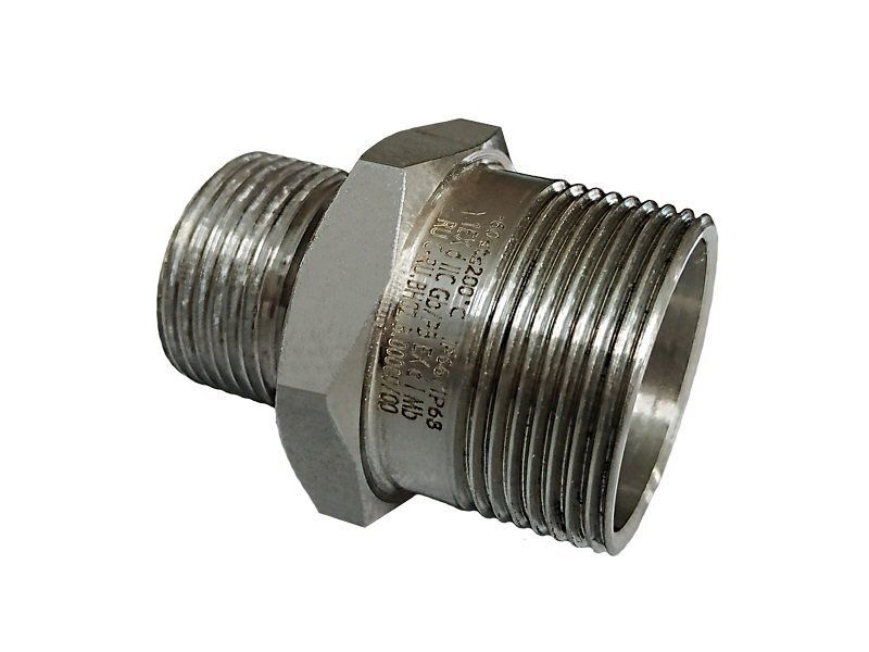 Металлические резьбовые переходники взрывозащищённые Ех-переходник МКВМ предназначены для изменения диаметра и/или изменения типа резьбы вводных отверстий.