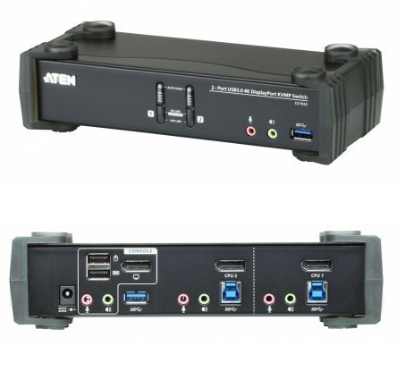 Переключатель Switch, DP+KBD+MOUSE, 1> 2 блока/порта/port USB, c KVM-шнурами DP 2x1.5м.+USB 2х1.8 м., (3840x2160 60Hz UHD/4096x2160 60Hz DCI; консоль упр. - USB; + 2 порт. HUB USB 3.0; DisplayPort ver 1.2; 5 лет гар+электростраховка), БП в комплекте, DC 5В, 0…+50°C, 210х88х55 мм.