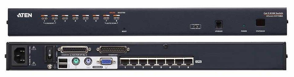 KH1508A-AX-G – KVM Переключатель KH1508A позволяет ИТ-администраторам получать доступ и управлять несколькими компьютерами с одной PS/2 или USB консоли KVM (клавиатура, монитор и мышь). Операторы могут управлять 8 компьютерами. Гирляндное подключение 31 дополнительного переключателя позволяет увеличить количество управляемых с одной консоли KVM компьютеров до 256.