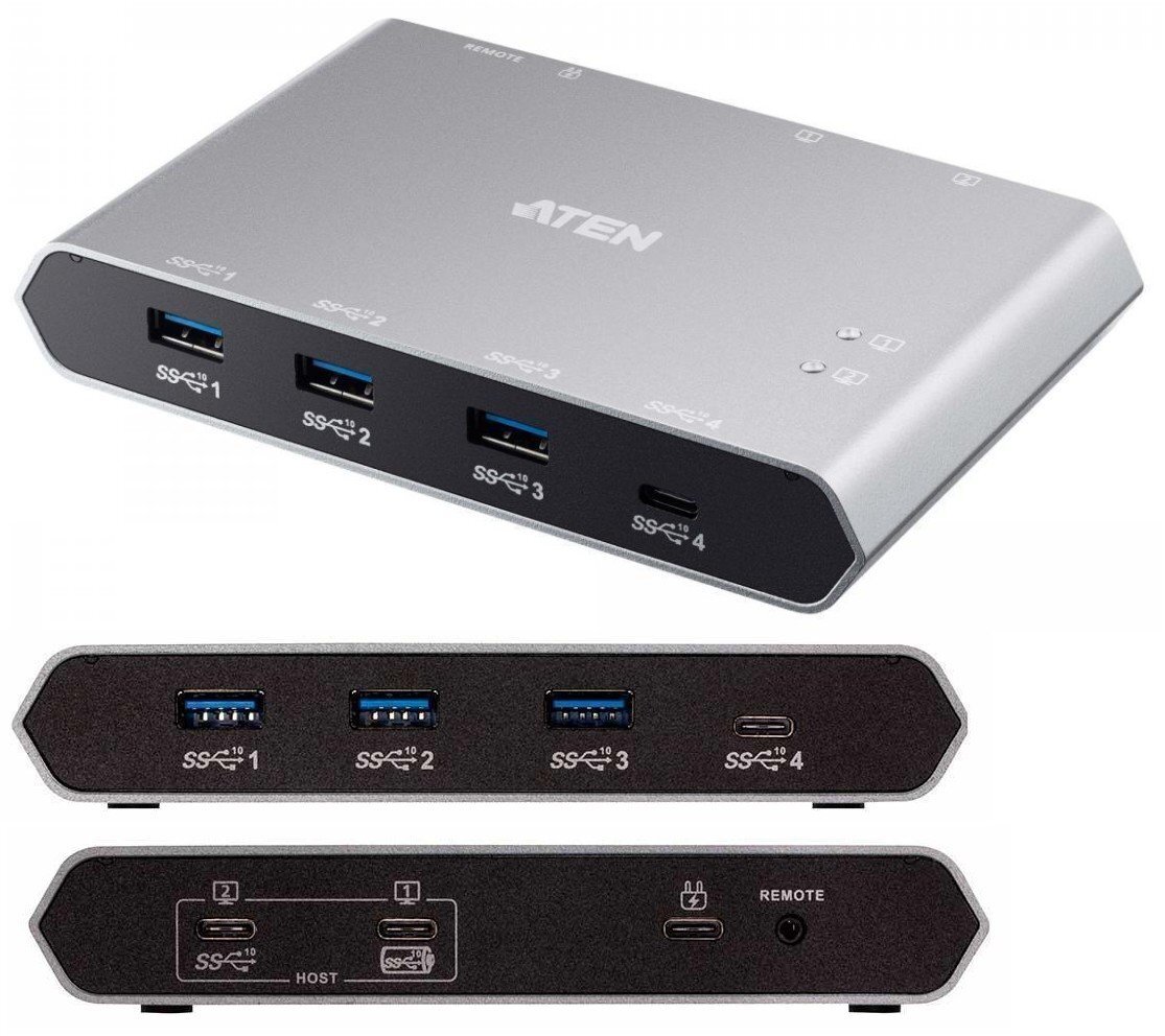 ATEN US3342 - 2-х портовый USB 3.2 Gen 2 Переключатель периферийных устройств, позволяющий пользователям разделять данные между 4 USB устройствами на 2 USB-C ноутбука. Технология USB 3.2 Gen 2 предоставляет скорость передачи данных до 10 Гбит/с и совместима с USB 3.1 Gen 1, USB 2.0 и USB 1.1.