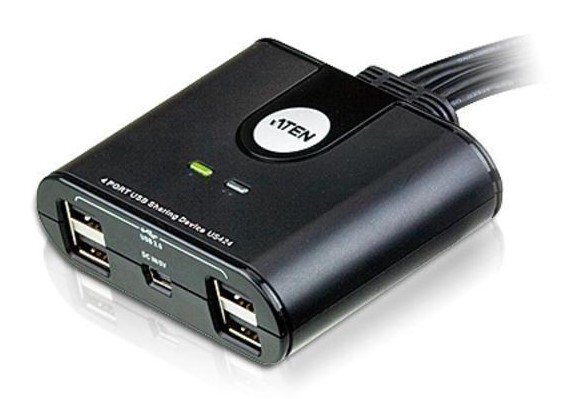 US424-AT– USB Переключатель ATEN US424 позволяет 4-м компьютерам совместное использование 4 USB-устройств (клавиатуры, мыши и двух периферийных устройств). Это уменьшает затраты на приобретение USB-периферии. Конструкция переключателя «все-в-одном» помогает избежать проблемы спутанных проводов: не нужно подключать 4 отдельных USB-кабеля к компьютеру.