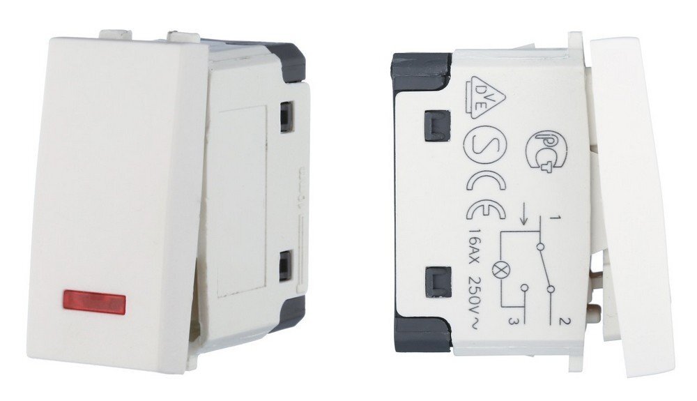 Переключатель с двух мест (схема 6L) Экопласт Переключатель с двух мест, с индикатором 45х22,5мм, белый LK45 (850404-1)
