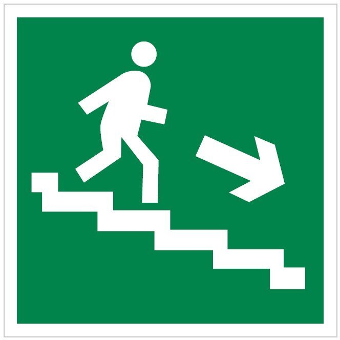 Плёнка фотолюм Прочие российские Плёнка Фотолюм. (Е-13) Направление к эвакуационному выходу по лестнице вниз направо (200х200)