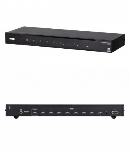 Переключатель Switch, HDMI, 8> 1 монитор/port, без шнур., (3 метр. до приемника/3 метр. от источника сигнала; макс.разр.4096x2160/3840x2160 60Гц 4:4:4 ; пульт Д/У; порт RS232; Б.П.220> 5.3V;5 лет гар+электростраховка), БП в комплекте, DC 5В, 3.7Вт, 0…+40°C, 437х158х44 мм.