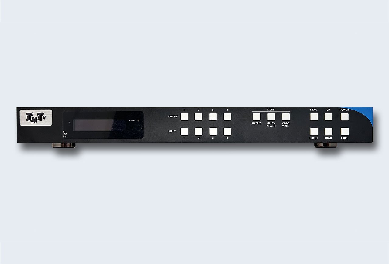 Переключатель/коммутатор матричный, HDMI, вход/выход 4 порта, без шнуров, (макс.разр. до 3840х2160 30Гц (4:4:4); подд. 3D/DeepColor/HDCP 1.4; формирование видеостен; WEB-интерфейс; API; интегрированный конвертер видеоразрешений/scaler), внешний БП 110-220В/DC 24В (2A), 0...+50°C, 435х235х45 мм.