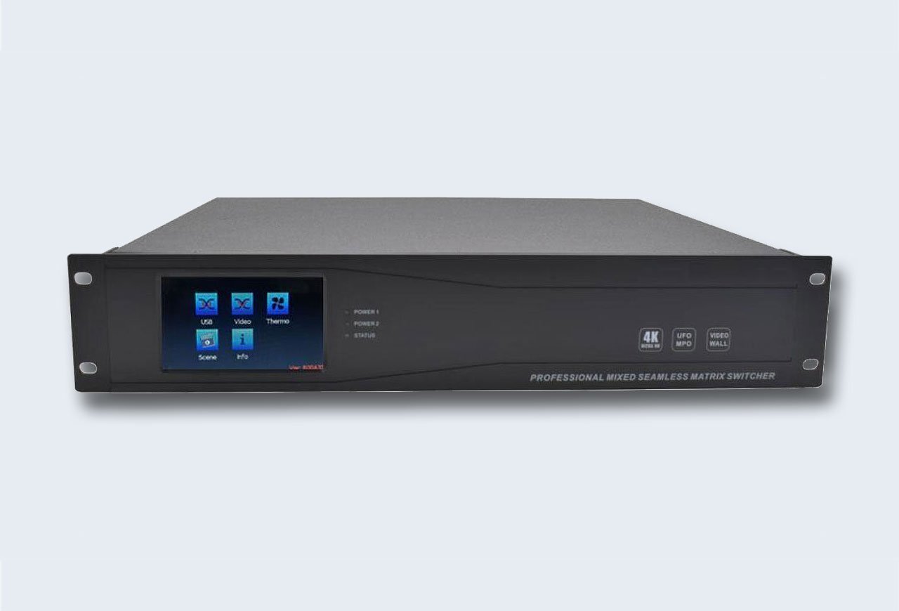 Переключатель/коммутатор-шасси матричный, VGA/DVI/HDMI/SDI+AUDIO, вход/выход 12 портов+4 выходн. порта, максимальное разрешение HDMI - 3840х2160 при 30 Гц (4:4:4), VGA/DVI/SDI - 1920х1200, без карт расшир., (бесшовное/seamless переключение источников; скейлер; выбор вариантов настройки; настройка EDID; шаблоны коммутации; API:RS232/Telnet), AC 100...240 В, 0...+50°C, 484х410х88 мм.