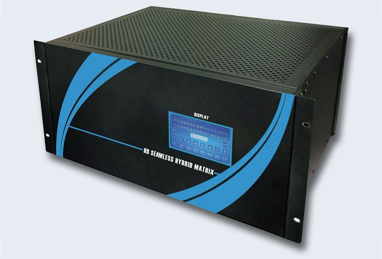 Переключатель/коммутатор-шасси матричный, VGA/DVI/HDMI/SDI+AUDIO, вход/выход 32 порта, максимальное разрешение VGA/DVI/HDMI/SDI - 1920х1200, без карт расшир., (бесшовное/seamless переключение источников; скейлер; выбор вариантов настройки; настройка EDID; шаблоны коммутации; API:RS232/Telnet), AC 100...240 В, 0...+40°C, 483х430х220 мм.