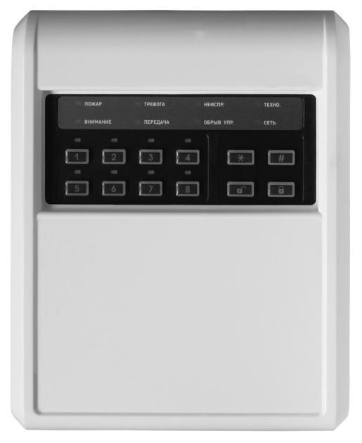 - 8 шлейфов сигнализации с возможностью программирования назначения, режима работы и объединения их в разделы, исходя из потребности на объекте;