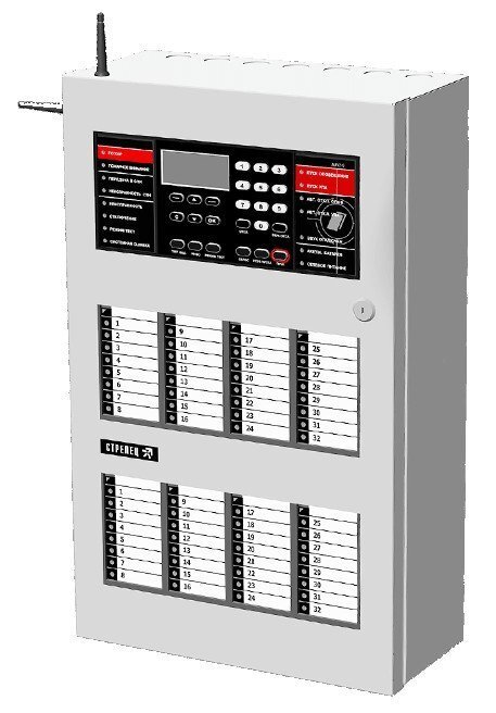 - 64 индикатора зон контроля пожарной сигнализации на лицевой панели