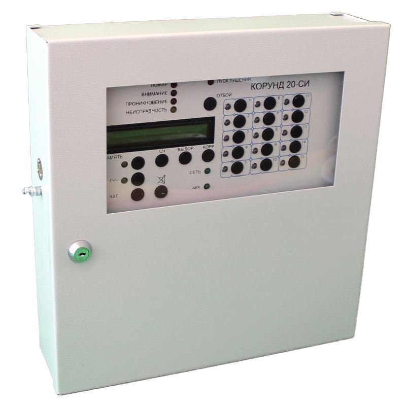 Взрывозащищенный охранно-пожарный приемно-контрольный прибор ППКОП 019-10/20-1 «Корунд 20-СИ» исп.02 (15 ШС) предназначен для организации систем пожарной или охранной сигнализации в помещениях с взрывоопасной средой на промышленных и других объектах, трансляции тревожных извещений на ПЦН, оповещения о пожаре и автоматического включения систем пожаротушения, дымоудаления, других устройств пожарной автоматики по адресу, соответствующему каждому шлейфу сигнализации и рассчитан на подключение 15 искробезопасных и независимых шлейфов сигнализации.
