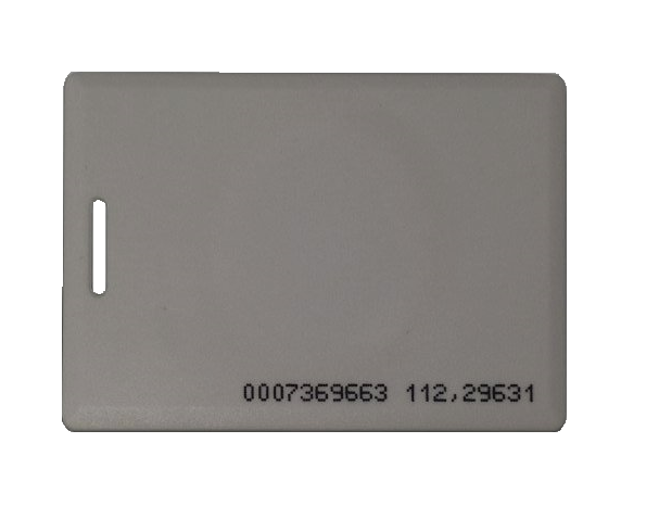 Карта EM-Marine, 125 кГц, c прорезью для крепления, с кодом на карте, материал: ABS, 86х54х1.6, цвет серый