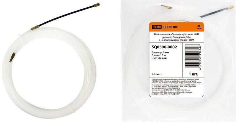 Протяжка кабельная TDM ЕLECTRIC Нейлоновая кабельная протяжка 3мм, 10м с наконечниками, белая (SQ0590-0002)