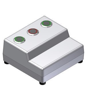 Пульт управления УСИЛЕННЫЙ. ТРИ цветные кнопки, возможно подключение СКУД через колодку на плате. Без переключателей направления свободного прохода. Обеспечивает режим «Проход группы людей» за счет длинного одновременного нажатия кнопки «Стоп» и кнопки выбранного направления. 125х120х58 мм. Работает со всеми турникетами OMA.