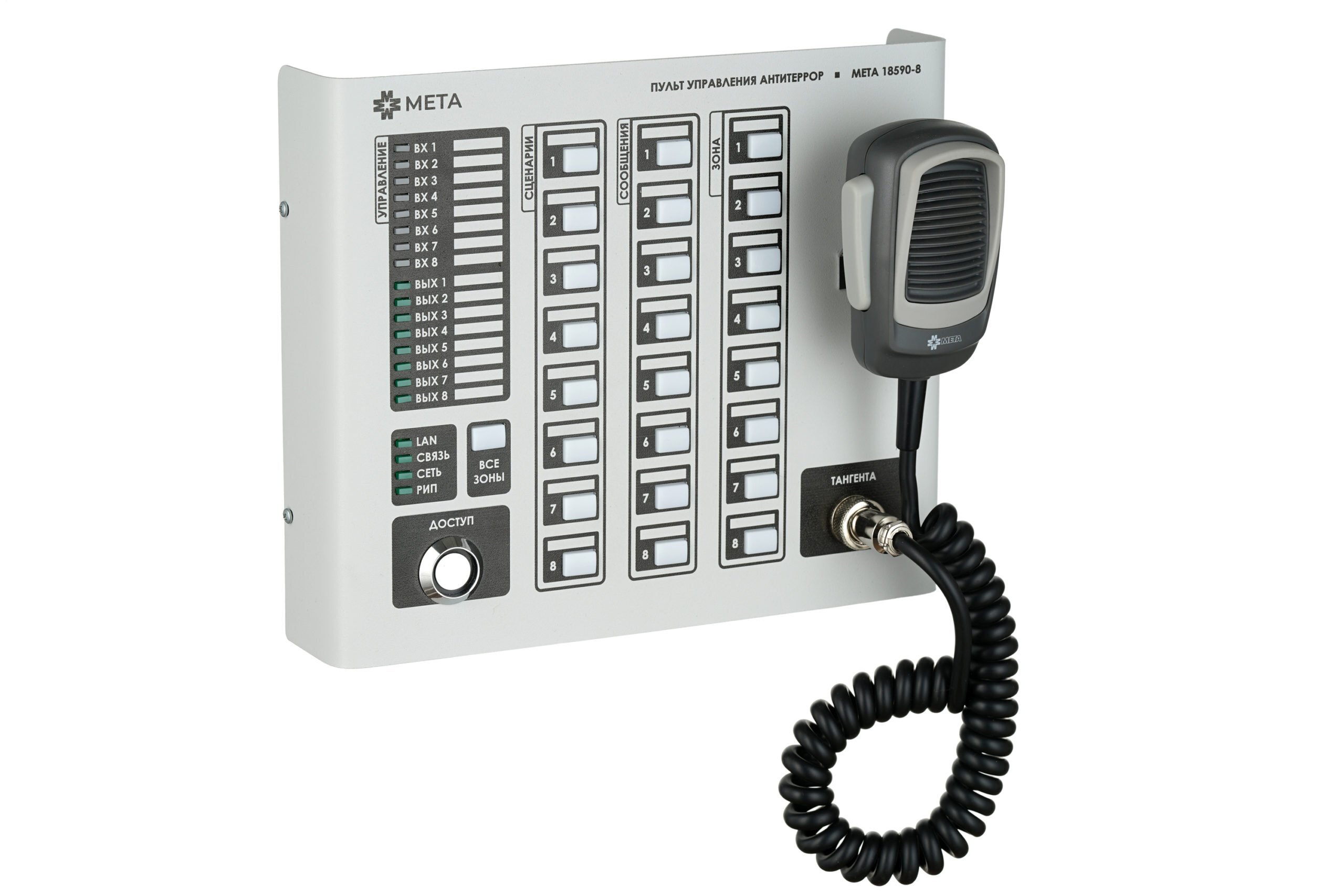 Пульт управления Антитеррор (ПУ) МЕТА 18590 предназначен для оперативного информирования о необходимости, порядке, и путях эвакуации при возникновении угроз или совершении преступных действий с признаками террористических проявлений, противодействии таким проявлениям, а также других координирующих действиях, направленных на обеспечение безопасности.