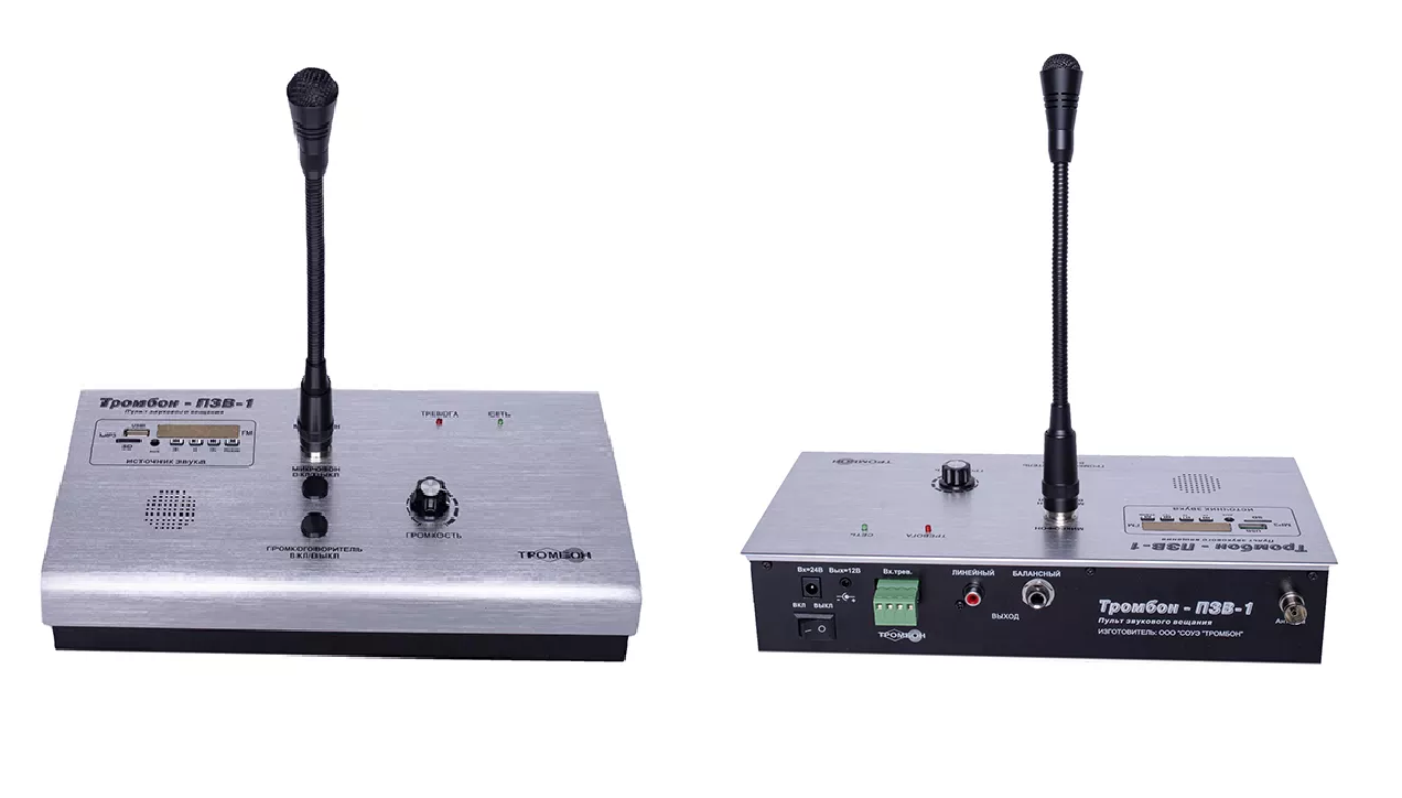 Пульт звукового вещания одноканальный «Тромбон – ПЗВ-1» предназначен для использования в составе ведомственных радиоузлов и систем оповещения людей о пожаре в зданиях и сооружениях.