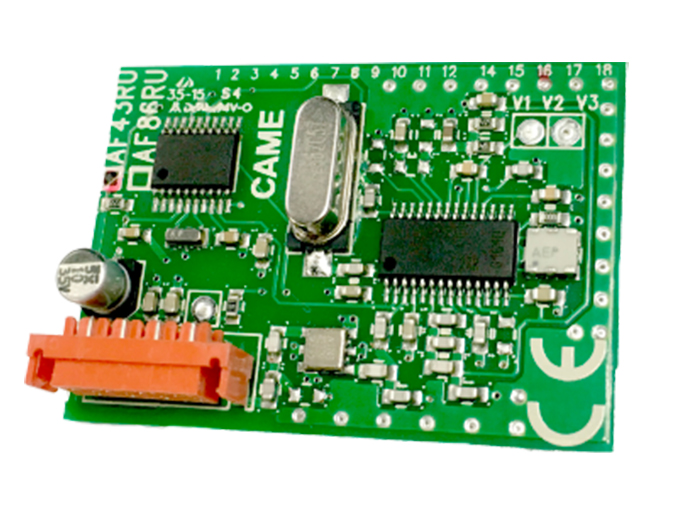 Плата радиоприемника CAME AF43RU предназначена для брелоков-передатчиков с кодировкой ТОР и ТАМ (для статических кодов)