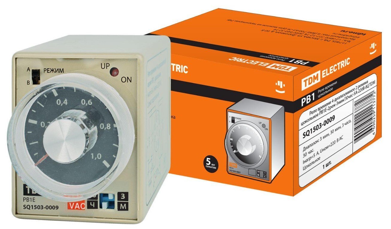 Реле времени для коммутации электрических цепей с выдержками по времени; подключение через разъем Р8Ц (приобретается отдельно); U-ном. 220 В, I-ном. 5 А, 2 х НЗ/НР-контакта; 2 режима работы (режим А - задержка включения, режим В - задержка включения+индикация пит.напряжения), устанавливаемые интервалы времени работы 3 сек/30 сек/3 мин/30 мин; t-раб.-10...+55°С, габ.размеры ВхГхШ 50х82х40 мм