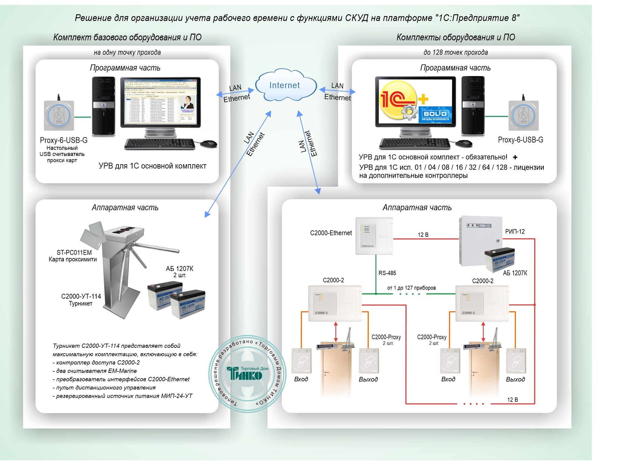 Решение для организации учета рабочего времени с функциями СКУД и возможностью неограниченного наращивания рабочих мест Болид Типовое решение: СКУД-017